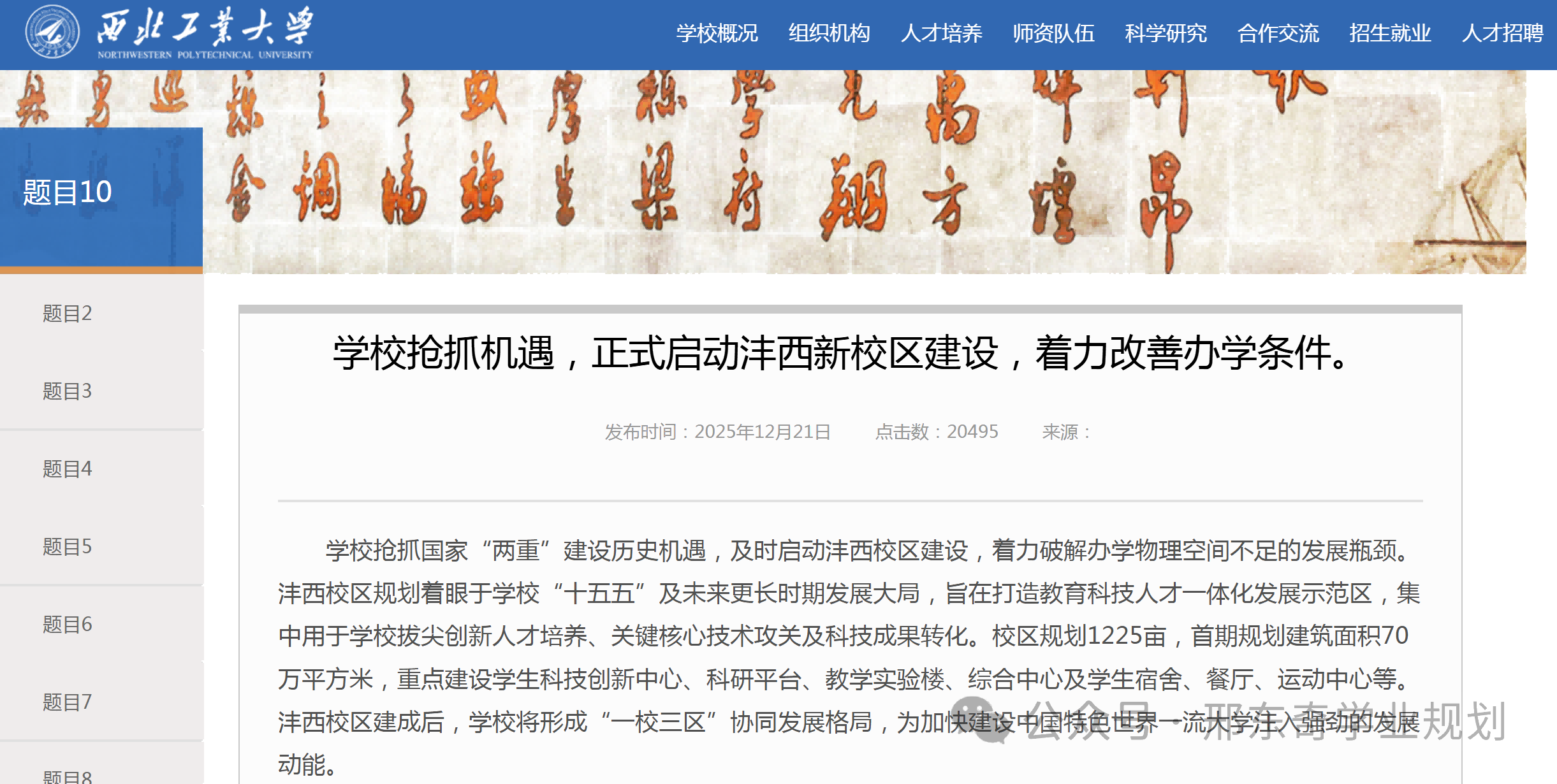 近日,西北工业大学官网上发布西北工业大学正式启动沣西新校区建设。
