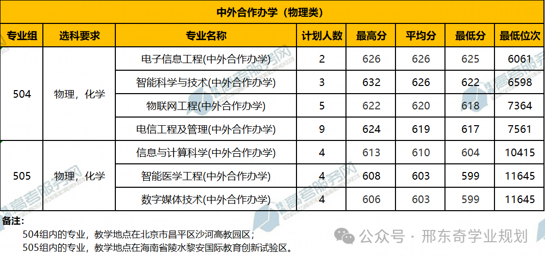 3、中外合作办学专业,在本科批次招收物理类考生: