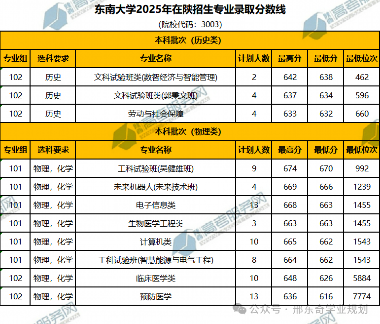 分数线丨东南大学2025年在陕专业录取分数线公布!