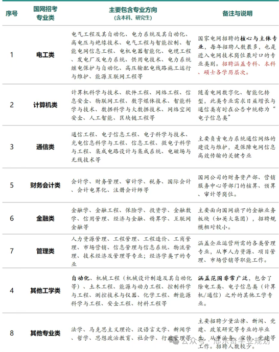 国网招聘划分为八大专业类别,各有对应考纲,其中电工类是绝对核心——本次第一批录用中,电工类专业占比超81%,电气工程及其自动化、智能电网信息工程等专业成为“香饽饽”。