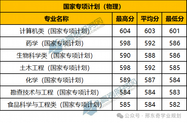 4、中国海洋大学的国家专项计划,在本科批次普通类招收原国家级贫困地区的物理类考生,录取情况如下: