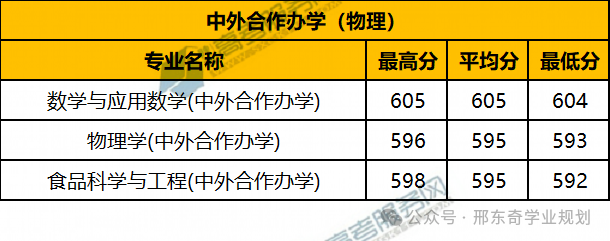 3、中国海洋大学的中外合作办学专业,在本科批次普通类招收物理类考生,录取情况如下:
