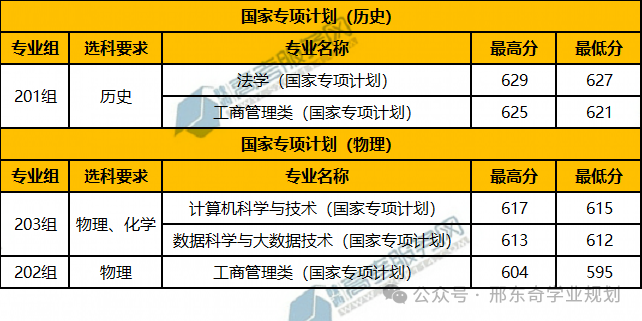 2、上海财经大学的国家专项计划,在本科批次普通类招收原国家级贫困地区的历史类、物理类考生,录取情况如下: