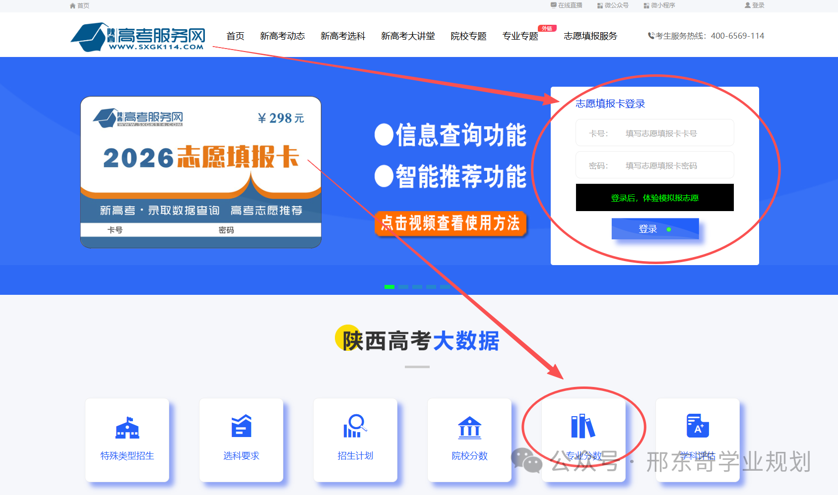 登录陕西高考服务网(www.sxgk114.com),使用【志愿填报卡】账号和密码,登录【智能推荐系统】,点击【院校专业分查询】。