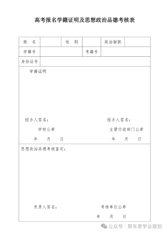 3、高考报名学籍证明及思想政治品德考核表:学籍证明表