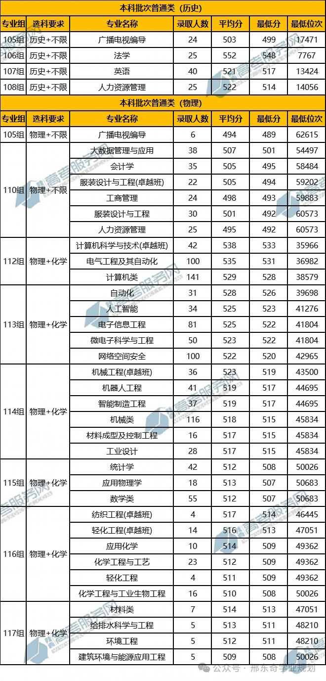 西安工程大学在本科批次普通类招收历史类、物理类考生,录取情况如下: