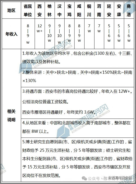 表1 陕西省选调生薪资待遇汇总表