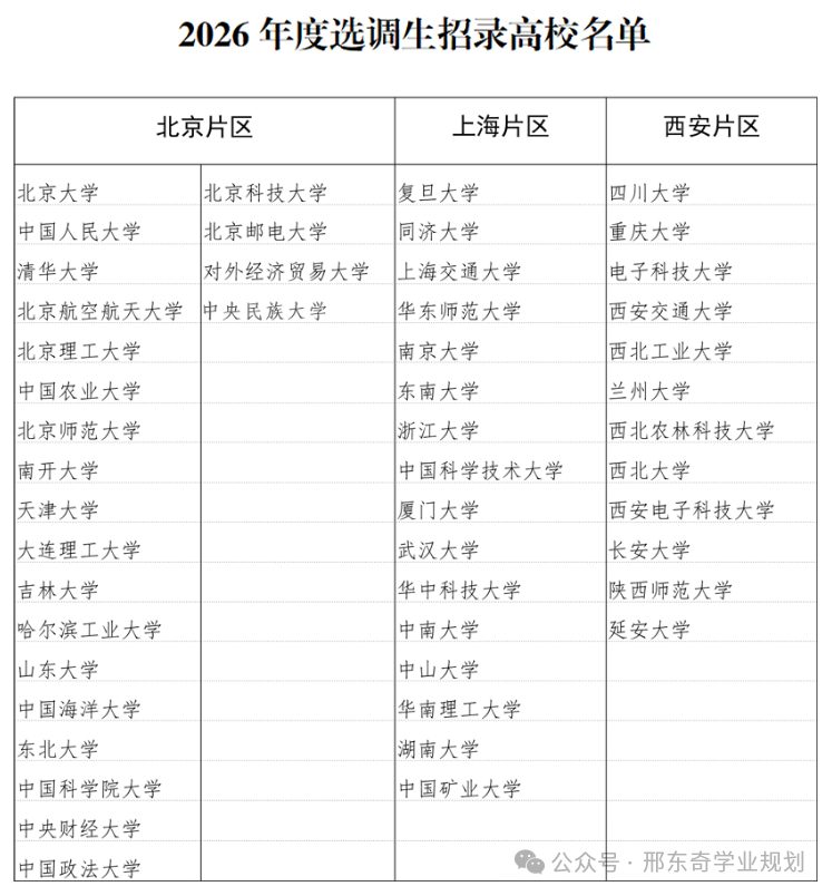 2026年度陕西省招录选调生高校名单(共50所):
