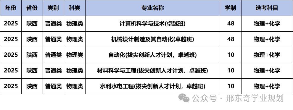 西安交通大学2025年卓越计划陕西招生计划